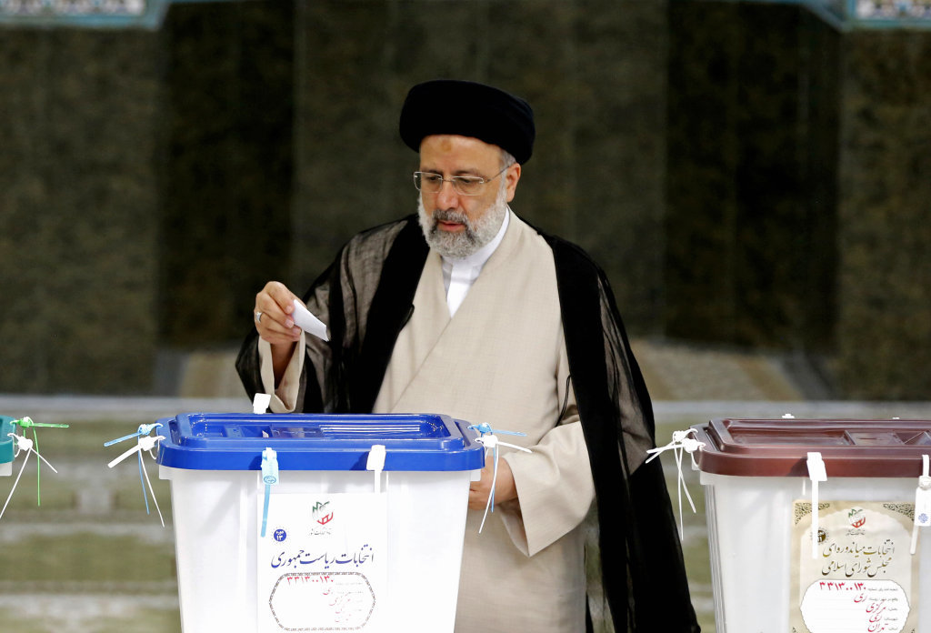 6月18日,伊朗总统候选人易卜拉欣·莱希在德黑兰的一个投票站投票。新华社发(艾哈迈德·哈拉比萨斯摄)