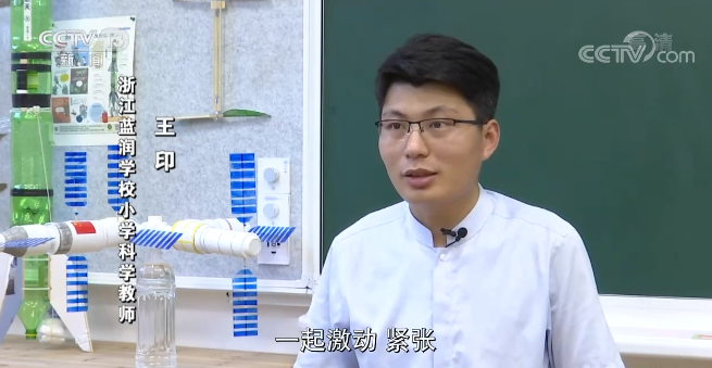(虽然临近期末考试,浙江一所小学科学老师王印,坚持组织学生观看神舟十二号电视直播,他曾因带领学生制作水火箭而走红网络。)