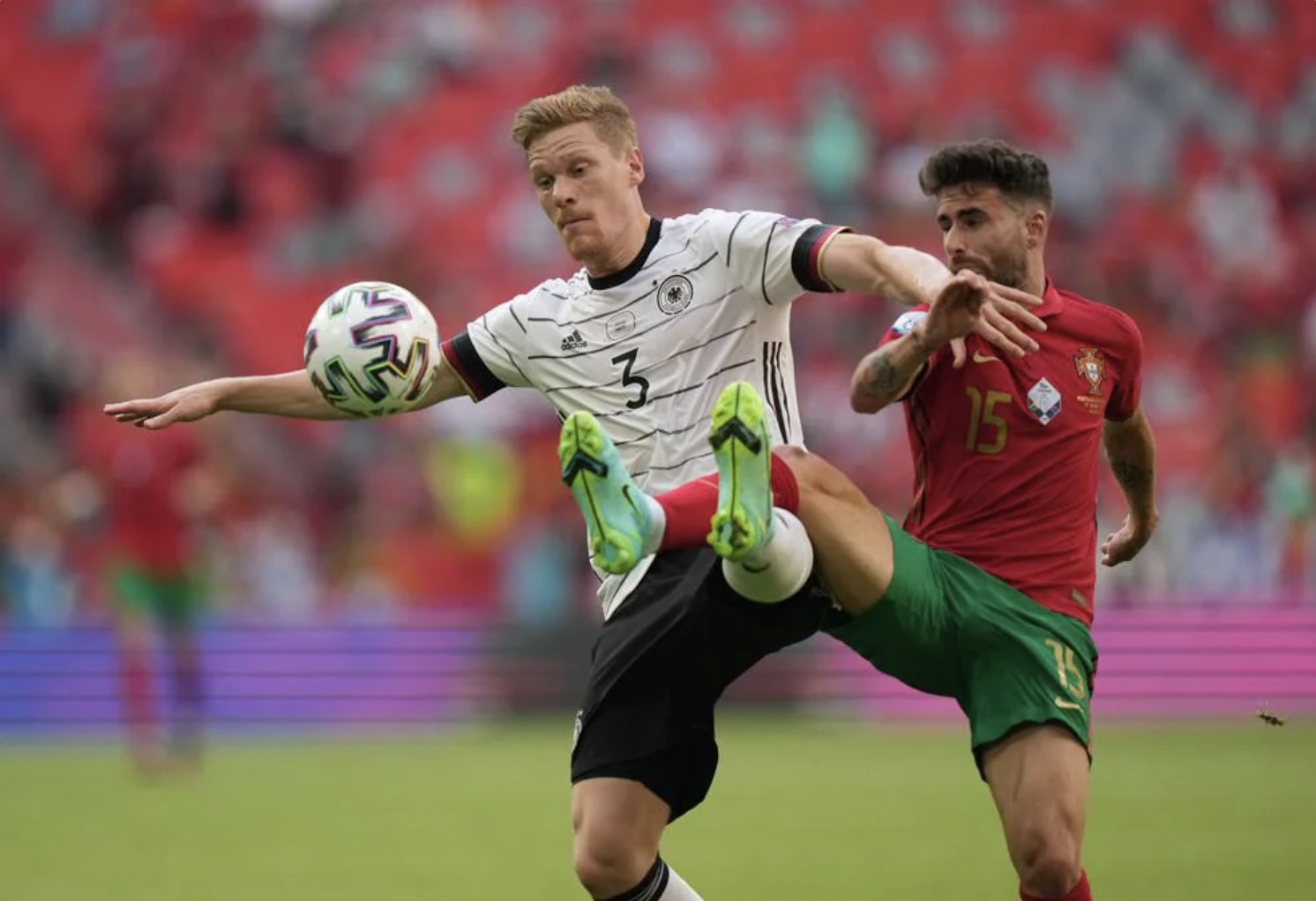 当日在慕尼黑,首轮不敌法国队的“德国战车”主场迎战首场完胜匈牙利的葡萄牙,两队均展开强攻模式,卫冕冠军由C罗第15分钟率先破门。此后,德国队的快速推进给葡萄牙后防造成巨大压力,迪亚斯、格雷罗在四分钟内连续自摆乌龙,葡萄牙1:2落后进入中场休息。