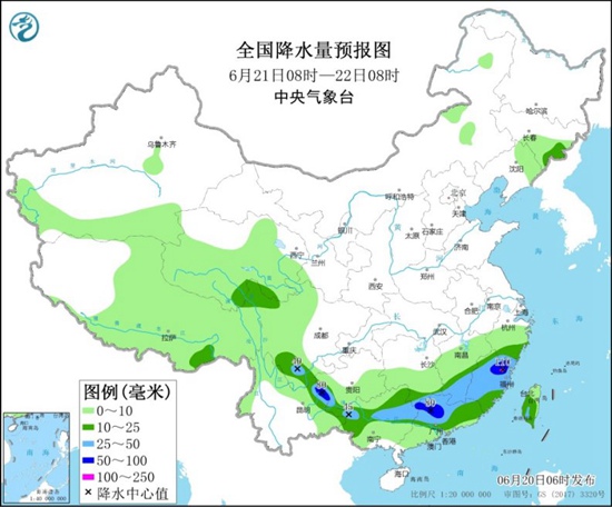 受副高影响,6月20日和21日,华南、华北中南部、江南南部等地有35℃以上高温天气,其中,广西西南部等地日最高气温可达37~38℃;22日,上述地区的高温天气减弱或结束。公众依然要做好防暑降温措施,避免在午后高温时段外出。