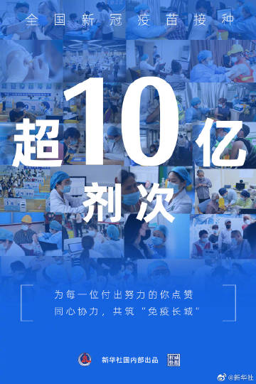 【权威快报|#全国新冠疫苗接种剂次超10亿#】国家卫健委6月20日通报,全国新冠疫苗接种超10亿剂次,这个数字来之不易。这场大规模接种工作,离不开全国人民的共同努力,#预计年底前至少70%目标人群接种疫苗#。疫情形势仍然严峻,你我同心协力,共筑“免疫长城”。(记者陈席元、徐鹏航,海报设计张晨光)