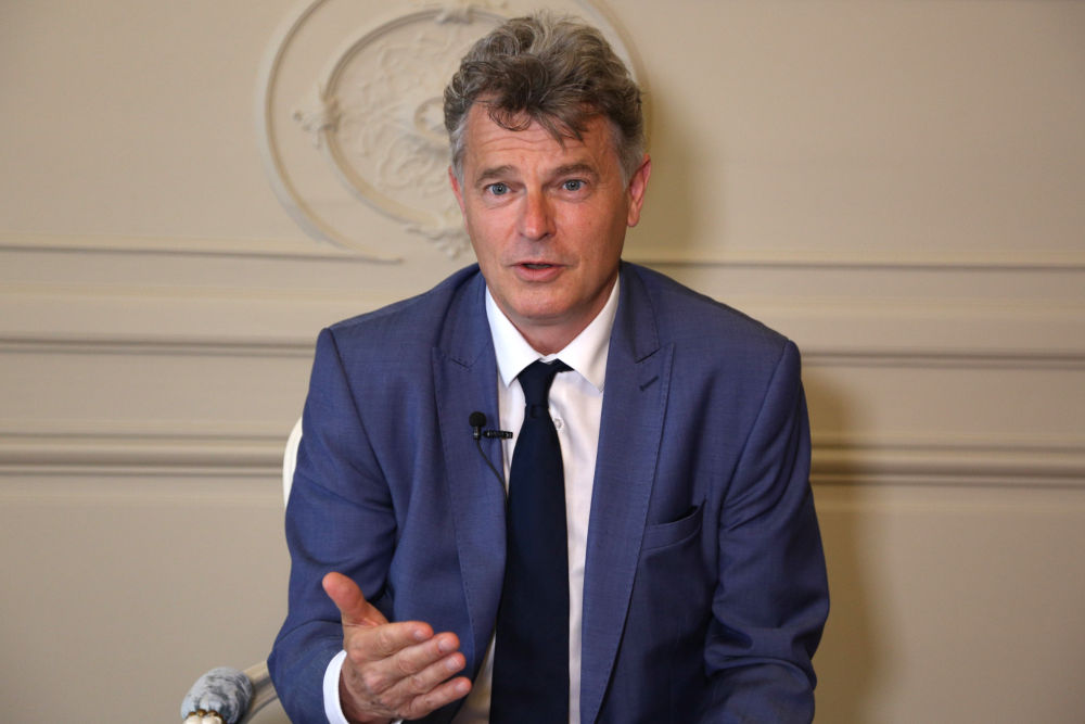 6月10日,法国共产党全国书记法比安·鲁塞尔在巴黎接受新华社记者采访。新华社记者 唐霁 摄