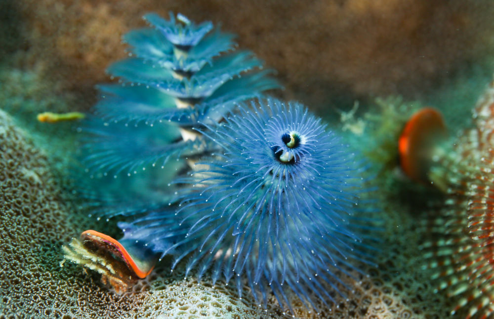 ↑ 蜈支洲岛海域海洋牧场中的圣诞树管虫