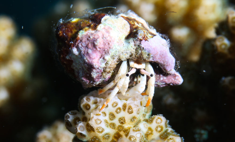 ↑ 蜈支洲岛海域海洋牧场中的寄居蟹