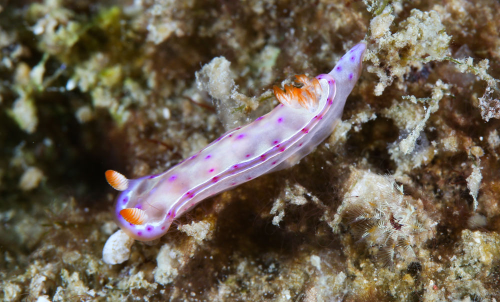 ↑ 蜈支洲岛海域海洋牧场中的海蛞蝓