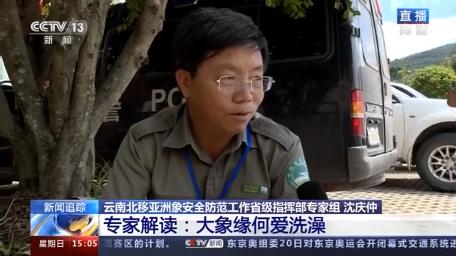 云南北移亚洲象安全防范工作省级指挥部专家组 沈庆仲:所有大象都喜欢玩水、洗澡,不仅仅是这群野象。大象在野外都会去找水,一方面是饮水,有条件就玩玩水。洗澡的过程,还能帮助大象消化、补充身体需要的微量元素。