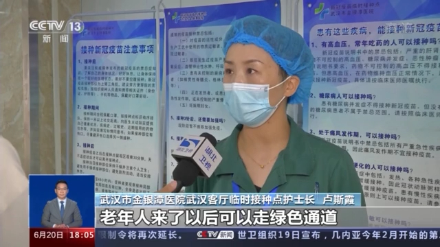 武汉市金银潭医院武汉客厅临时接种点护士长 卢斯霞:现在的第二剂次的疫苗都是通过网上预约或者现场排队等形式来进行有序接种,老年人来了以后可以走绿色通道。