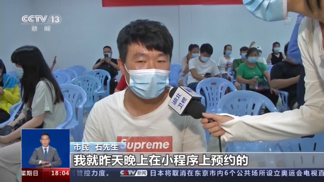 市民 石先生:我就昨天晚上在小程序上预约的,今天早上就来打了,第二针刚打完。