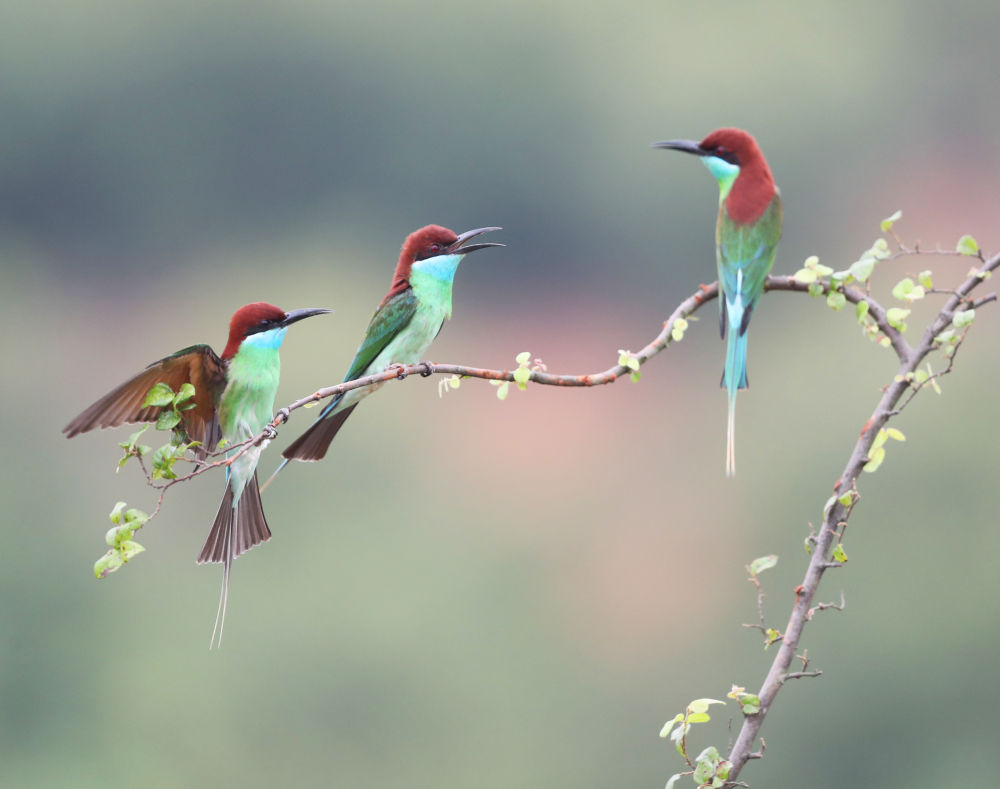 随着生态环境的改善,越来越多的蓝喉蜂虎现身湖南省衡阳市衡东县的山林中。