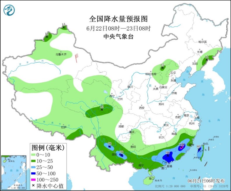 6月中旬以来,东北、黄淮、西北地区东南部以及长江以北不少地方降雨偏多。近期,在江南东部等地出现了明显降雨,像昨天,贵州西南部、广西北部、湖南西北部和南部、江西南部、浙江中南部、福建中北部等地部分地区出现大雨或暴雨,广西河池和桂林、湖南永州和郴州、福建福州等局地大暴雨(100~160毫米),湖南永州江永县局地225毫米,上述部分地区最大小时降雨量50~90毫米,局地超过100毫米。