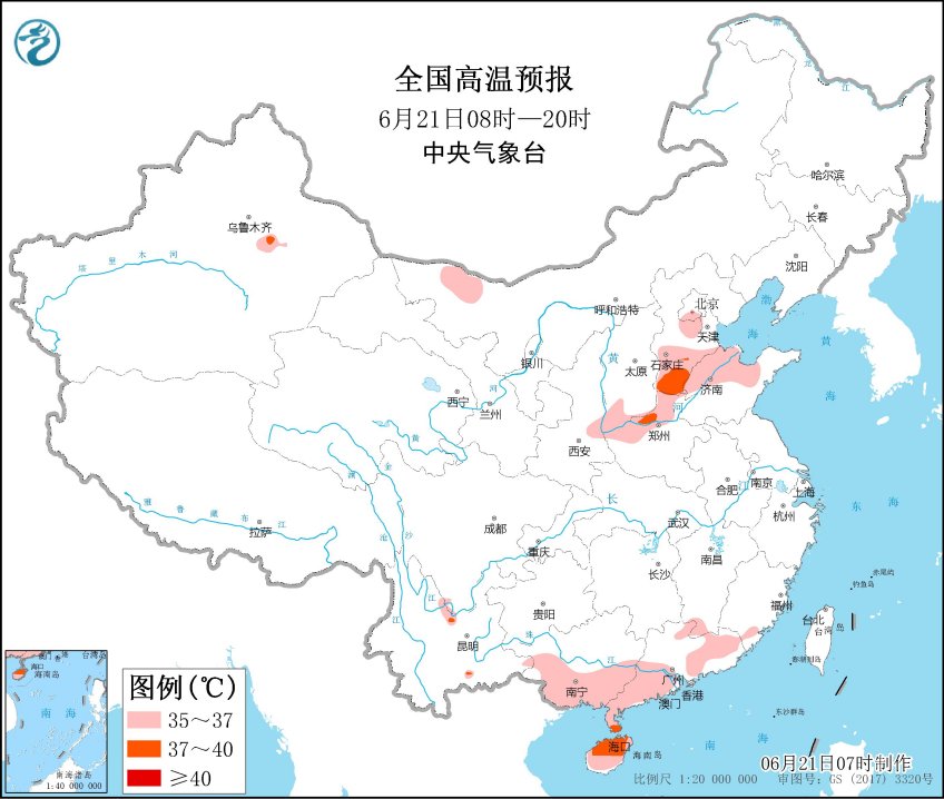 今天起随着雨带南移,华南高温范围将消减。其中今天广西南部、广东西部、海南等地仍有高温,广西西部等地日最高气温可达38~40℃。明天,华南地区的高温将仅出现在海南岛部分地区。