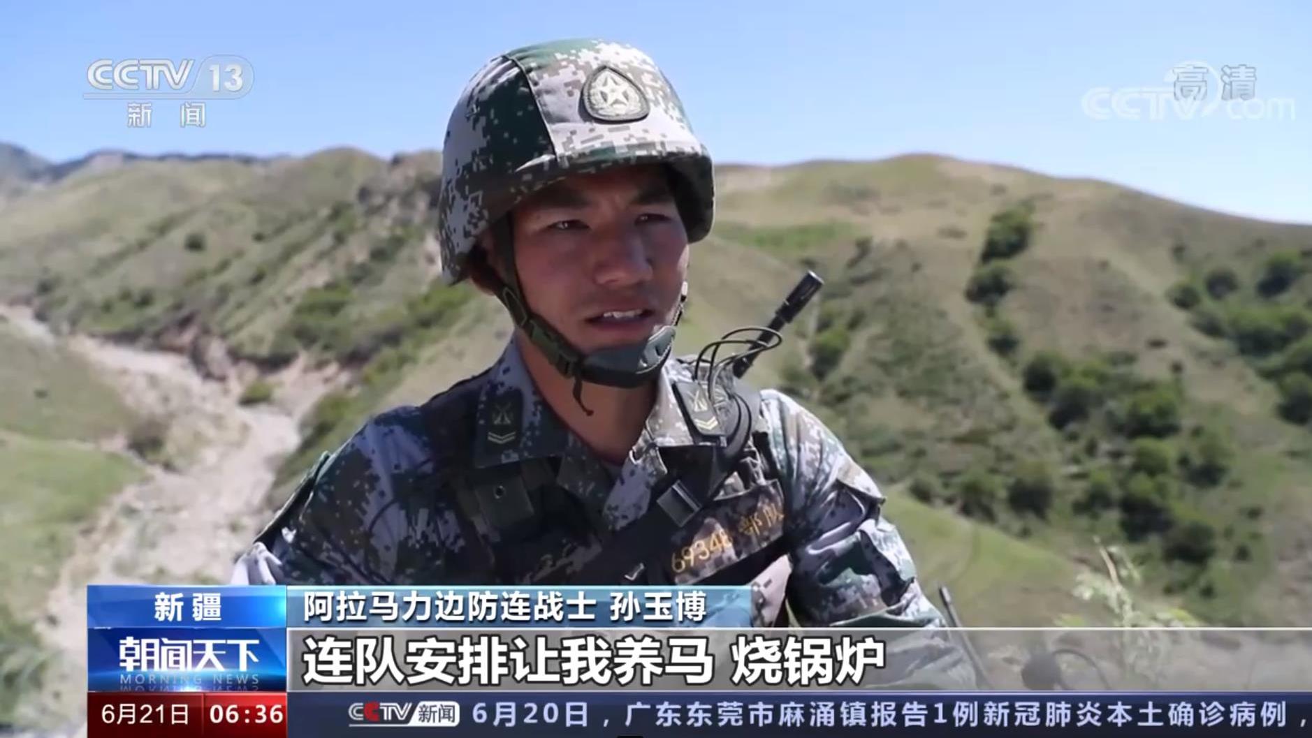 阿拉马力边防连战士 孙玉博:刚来连队的时候,连队安排让我养马、烧锅炉,这个时候我的心里面就产生了很大的落差,因为在我的脑海里面,我感觉这个部队就是硝烟弥漫的演训场,这个时候我们指导员及时发现,就找了一名老班长给我做思想工作,及时转变了我的工作状态。