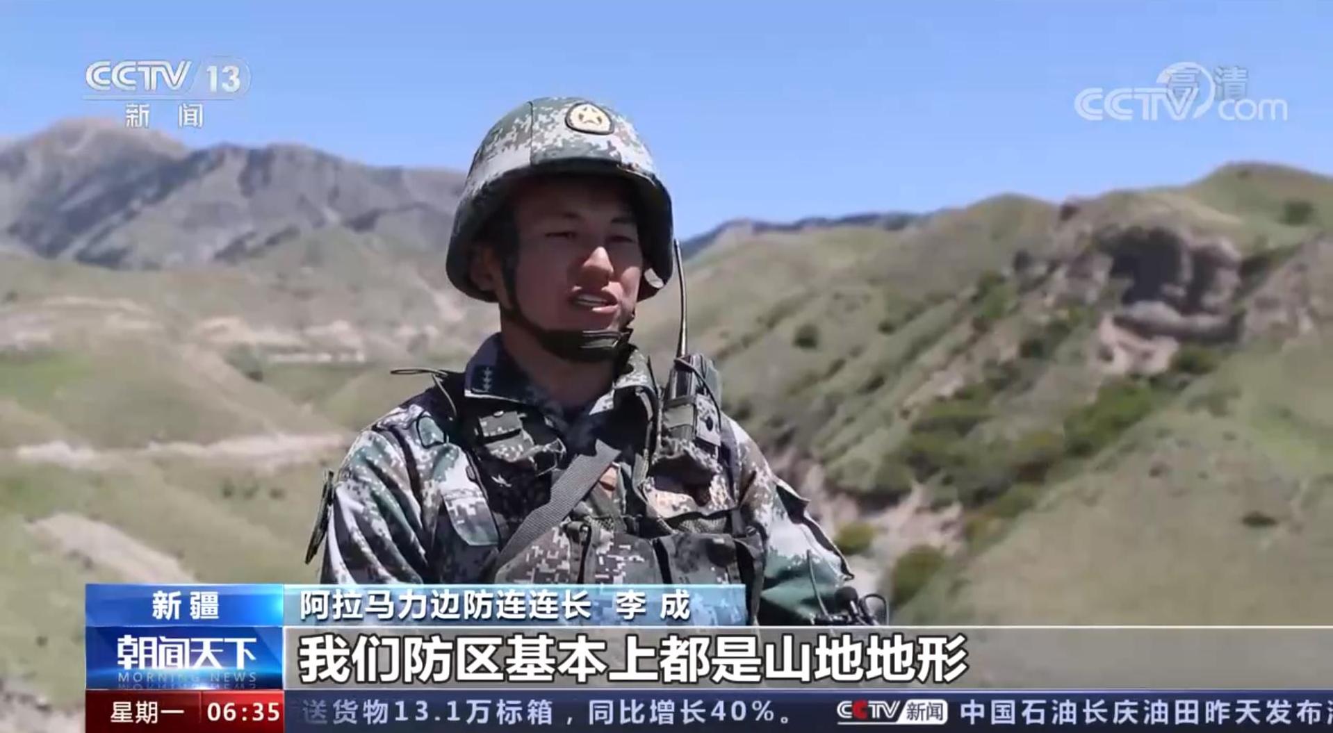 阿拉马力边防连连长 李成:我们防区基本上都是山地地形,沟壑纵横,植被茂密、野生动植物资源丰富,夏天的时候,山体滑坡、泥石流等自然灾害频发。我们的巡逻路经常受损,冬天的时候,大雪封山,雪最厚的时候可以没过我的脖子,给养保障比较困难。我们防区主要任务是巡查国边界,维护边境设施。