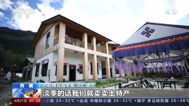巴松措民宿老板 次仁德吉:拉林高速修好了的,客人越来越多,我们做生意也是越来越方便。现在旺季的话,我们做民宿,淡季的话我们就卖土特产,现在的话我们家家户户都有车子。