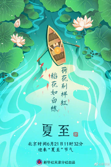 #夏至来了#【今日夏至 #愿一切美好都能如夏而至#】“昼晷已云极,宵漏自此长。”今日迎来二十四节气中的“夏至”,标志着盛夏时节的开始。此时节,蛙声阵阵,蝉鸣声声,稻花如白练,荷花别样红。“星繁愁昼热,露重觉荷香。”这是一个枝繁叶茂、生机勃勃,充满无限可能的时节,愿一切美好都能如夏而至。(记者周润健)