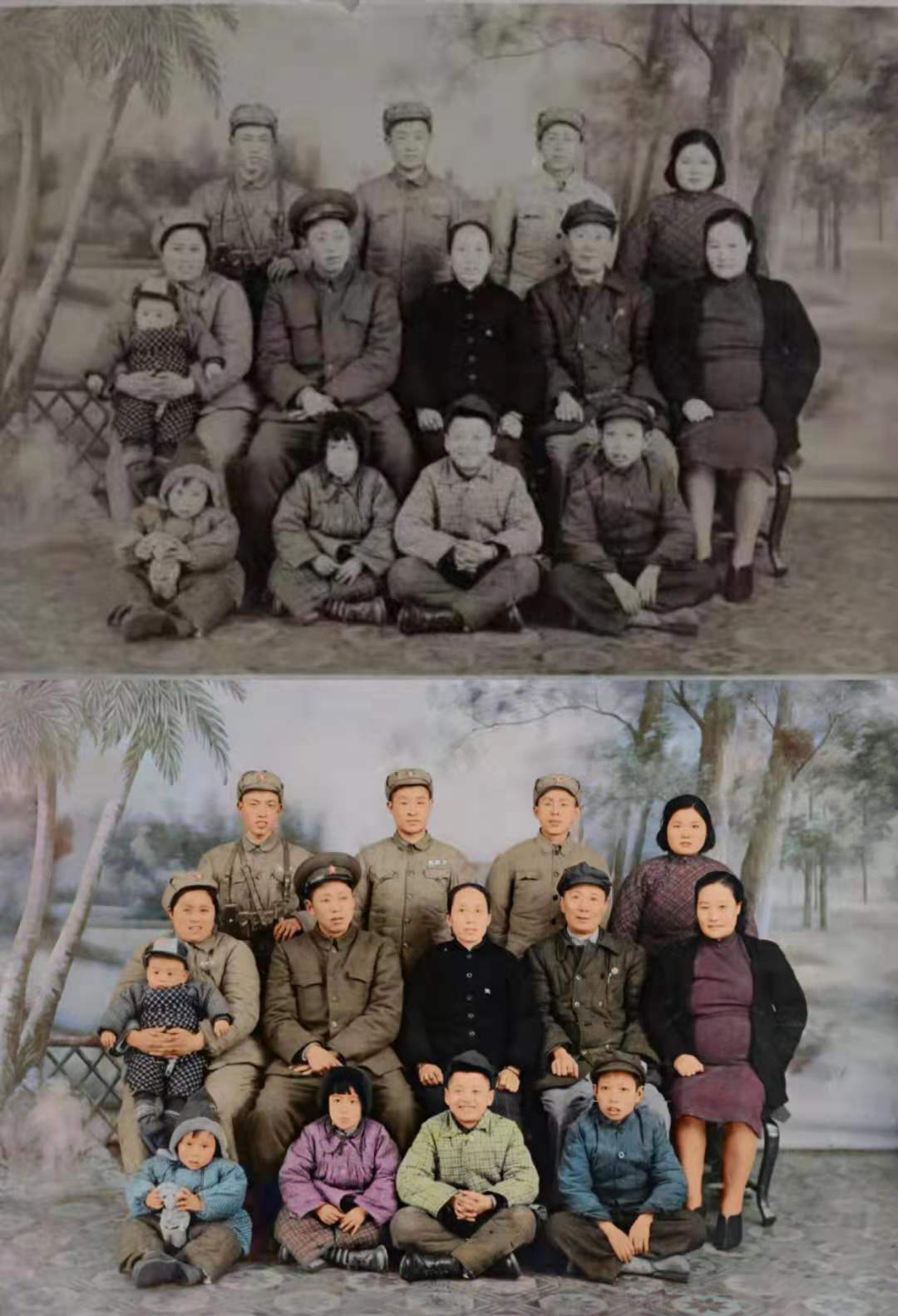 数字化修复和存储技术正助力“擦亮”红色珍档。图为利用人工智能图像处理引擎修复的饶惠谭烈士全家福。(受访者供图)