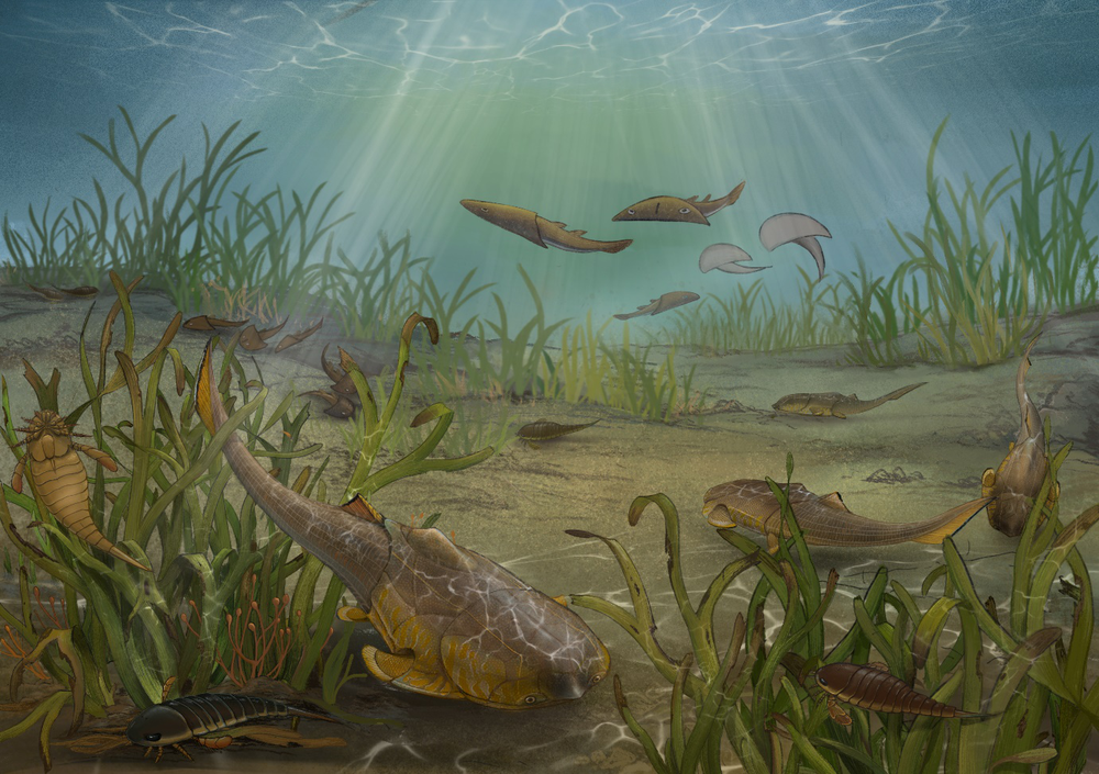 中国科学院古脊椎动物与古人类研究所、重庆地质矿产研究院等共同组成的研究团队,在重庆秀山地区发现了这块重要的化石。中科院古脊椎所研究员朱敏介绍,在4.23亿年前的志留纪晚期,华南古陆漂泊在赤道附近的大洋之中,而秀山地区当时位于华南古陆北缘一个比今日渤海还要大的内海中。“河流在这里汇入内海,带来了大量养分,河口和滩涂的半咸水中生长着大量的原始植物,其间生活着无颌的盔甲鱼类、海蝎和最早的有颌鱼类。”
