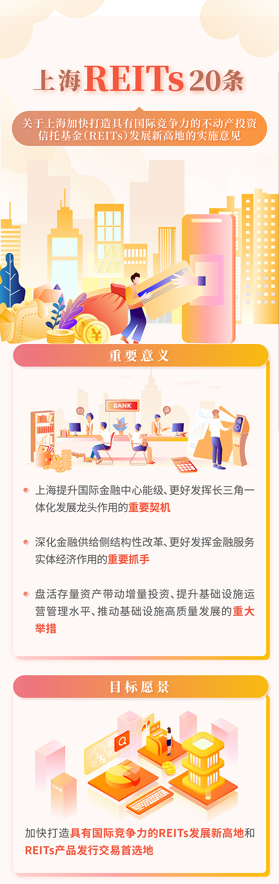 同时,《关于上海加快打造具有国际竞争力的不动产投资信托基金(REITs)发展新高地的实施意见》也于今日正式印发,自8月1日起施行。详见↓