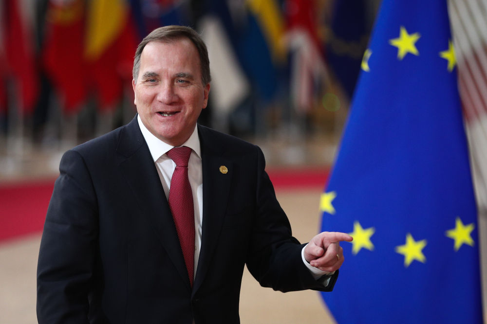 2019年12月12日,瑞典首相勒文抵达比利时布鲁塞尔的欧盟总部出席欧盟冬季峰会。(新华社记者郑焕松摄)