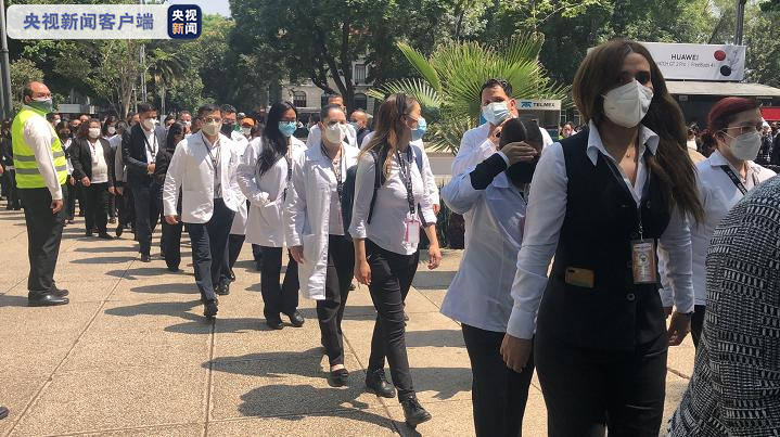 墨西哥当地时间6月21日中午11时30分,墨西哥举行2021年度首次全国地震预警演习,地震警报响起,民众快速疏散到安全的地方。