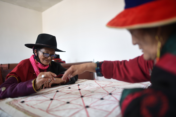 在治多县幸福敬老院棋牌室内,老人在下藏棋 张宏祥 摄