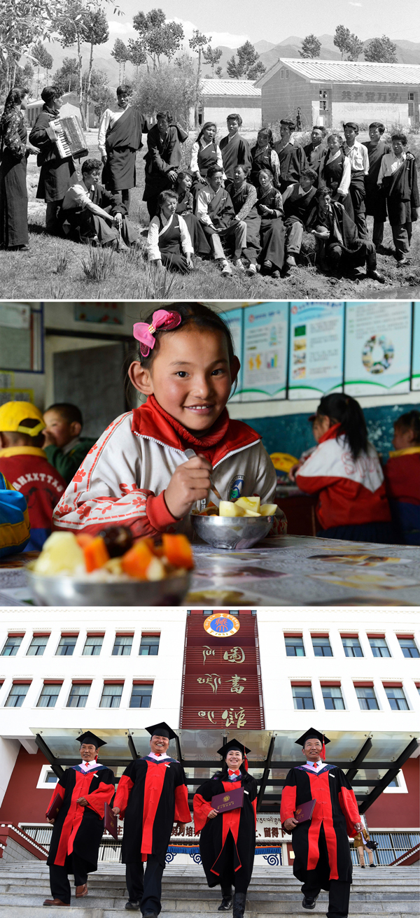 在旧西藏,农牧民被剥夺受教育权,适龄儿童入学率不足2%。1951年西藏和平解放后,百万农奴翻身做了主人。在国家持续投入下,现代教育体系在雪域高原逐渐建立。