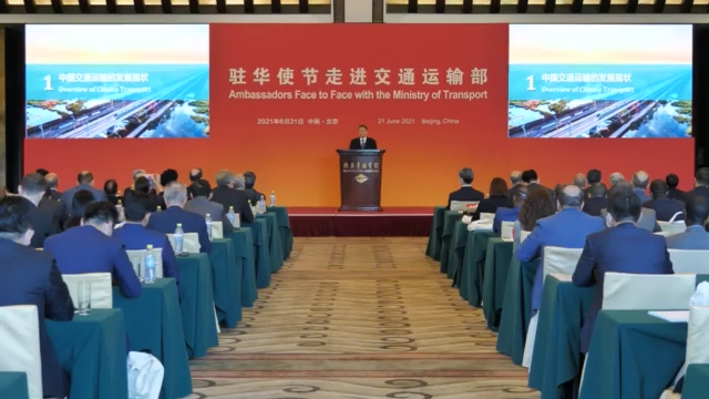 应外交部和交通运输部邀请,一百多名驻华使节及国际组织驻华代表21日走进交通运输部,同相关负责人进行交流,了解中国交通事业发展成就,探寻合作潜力。