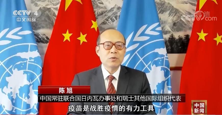 央视网消息:6月21日,中国常驻联合国日内瓦办事处和瑞士其他国际组织代表陈旭大使在联合国人权理事会第47届会议,就新冠肺炎疫情应对问题与人权高专互动对话时,代表来自世界各地的60多个国家做共同发言,呼吁促进全球疫苗公平分配。