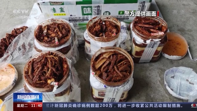 民警将两个包裹内的6桶萝卜干全掰开后,一共查获冰毒颗粒1.09公斤。