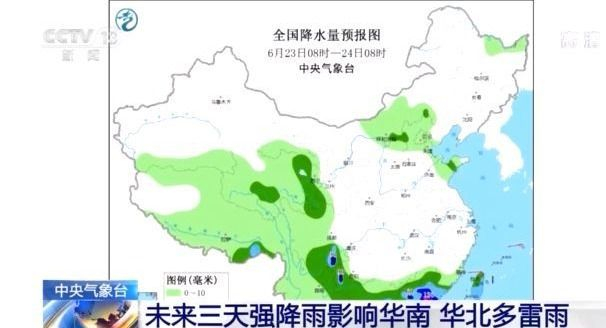 中央气象台预计,未来三天,我国南方强降雨主要集中在华南地区,福建、广东等地局地有暴雨或大暴雨;华北地区也将多雷阵雨,大家出行要注意携带雨具。