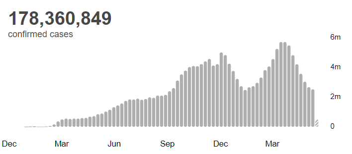 △全球累计新冠肺炎确诊病例178360849例