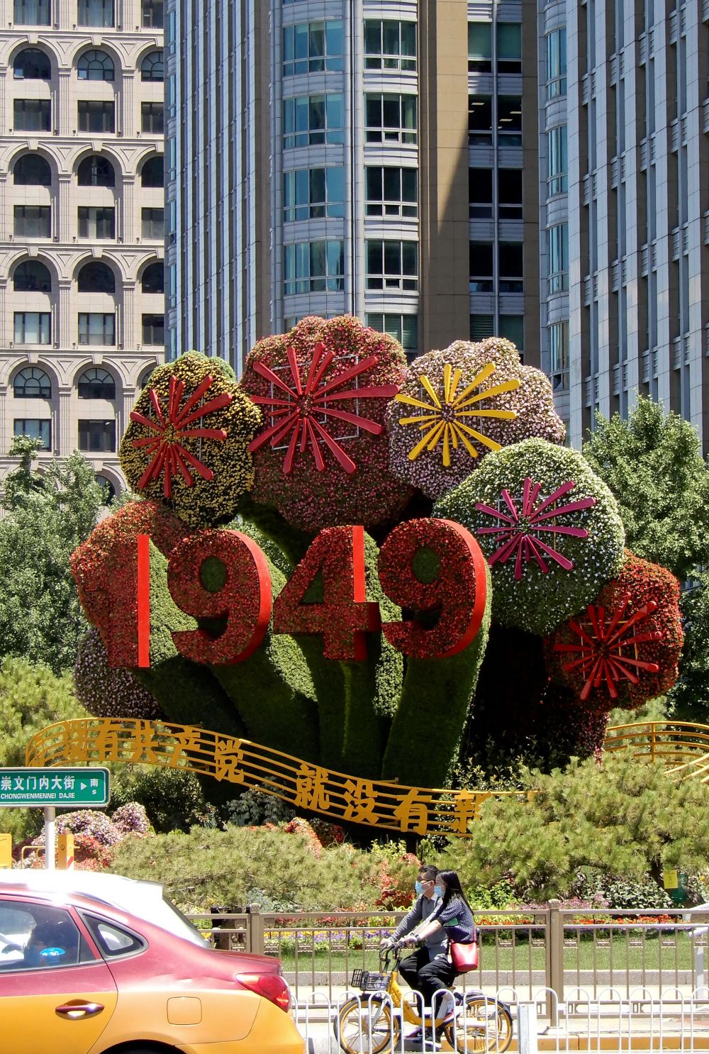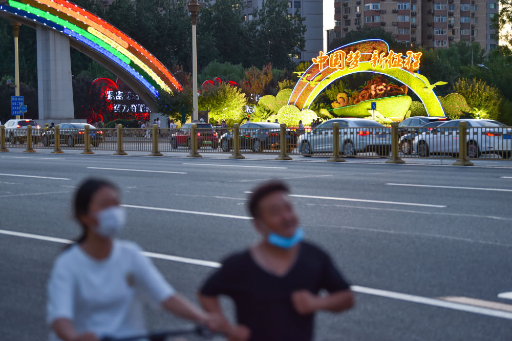 6月19日,行人经过位于北京东单东北角的“建军大业”花坛。新华社记者 陈钟昊