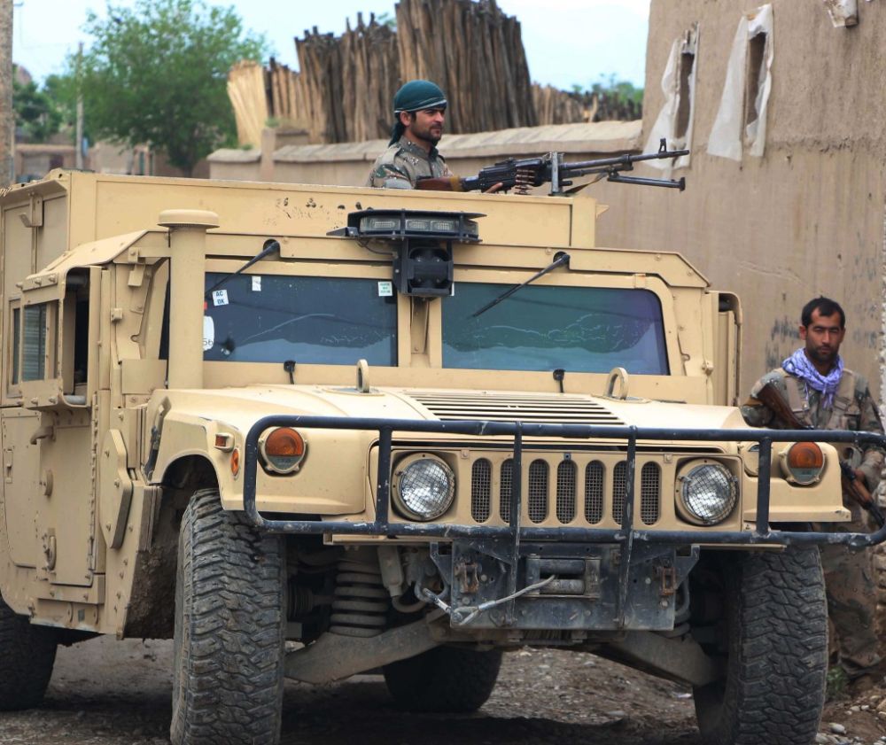 2019年4月13日,在阿富汗北部昆都士省,武装车辆在冲突中就位。(新华社发,阿杰马勒·卡卡尔摄)