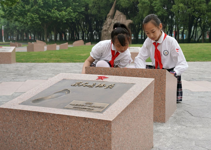 为庆祝建党百年、纪念红军长征胜利85周年,红军足印纪念园5月11日在上海东方绿舟正式开园。红军足印纪念园内展示了100位老红军的足印碑,并镌有老红军的姓名和留印时间等,以打造红色教育课堂,厚植青少年爱党爱国信念。新华社记者 刘颖 摄