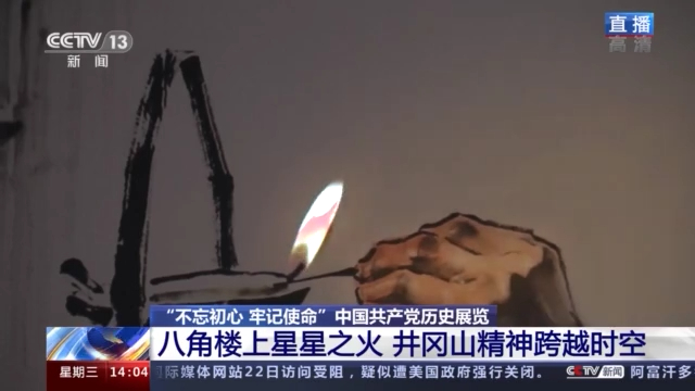 总台央视记者 刘峰:在我身旁还原的八角楼上那间小屋一角的场景里,我们依稀能够感受到当年党领导建立井冈山根据地的不易和艰苦卓绝。
