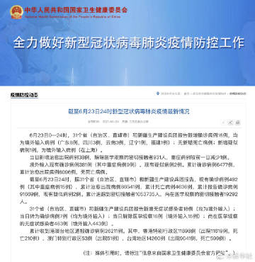 #23日无新增本土确诊病例#【#23日新增16例确诊均为境外输入#】据国家卫健委:6月23日0—24时,31个省(自治区、直辖市)和新疆生产建设兵团报告新增确诊病例16例,均为境外输入病例(广东8例,四川3例,云南3例,辽宁1例,福建1例);无新增死亡病例;新增疑似病例1例,为境外输入病例(在上海)。