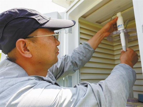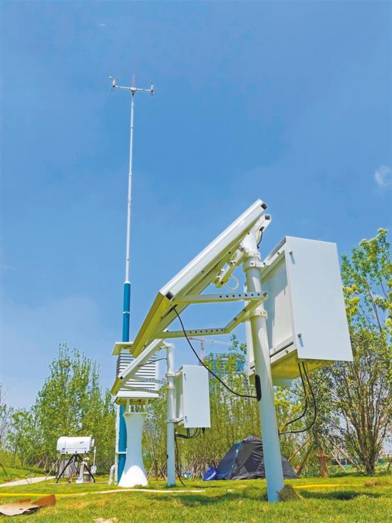 位于西安奥体中心东侧的气象数据采集设备。 本稿照片均由本报记者 陈博文摄