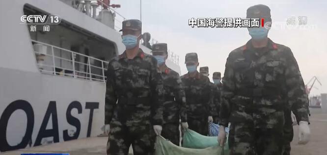 中国海警局直属第四局执法员:因为那个漂浮物也漂的不远,我们马上打捞。捞的时候也是摇摆很大,站在那个甲板上,感觉整个人身体都(能)摸到海水那种感觉。
