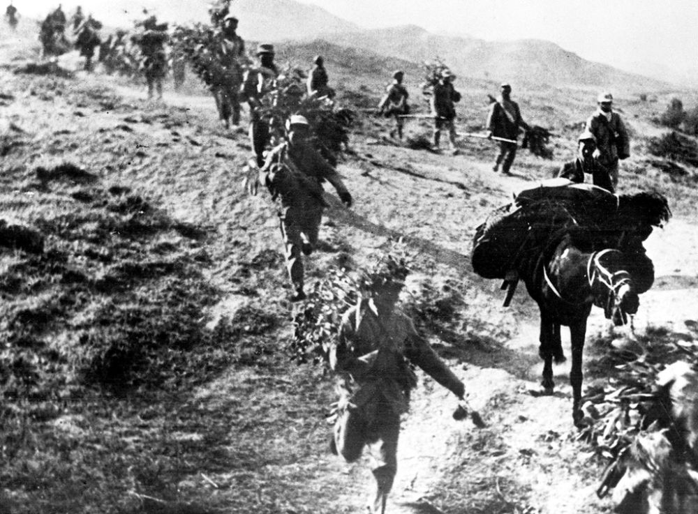 1947年5月13日,华东野战军在山东沂蒙山区发起孟良崮战役。图为我军向孟良崮进军。新华社发