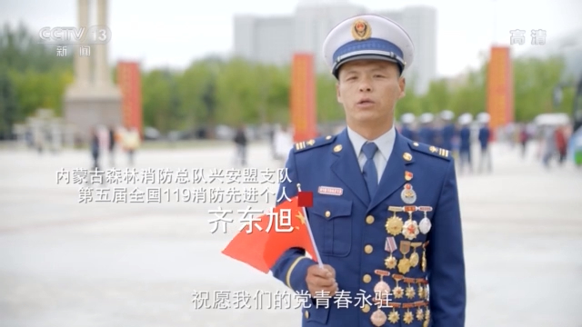 内蒙古森林消防总队兴安盟支队 第五届全国119消防先进个人 齐东旭:祝愿我们的党青春永驻,祝愿我们的祖国繁荣昌盛。