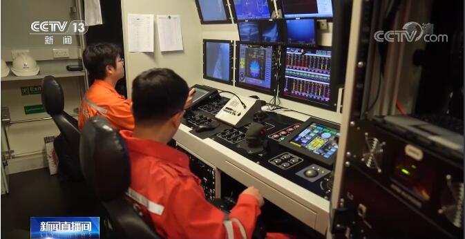 海洋工程水下机器人监督 刘军:现在深度是1130米,距离放到位还有100多米。到了1320米的深度话,是我们的AUV和TMS位置,然后rov(水下机器人)再操作,这样rov自由度更高一点。我们从笼子出来的话,它的缆更细更柔软一些,我们的rov的飞行更自由一些。刘军把水下机器人在深水中作业称为飞行,他们也因此被称作是“水下飞行员”。