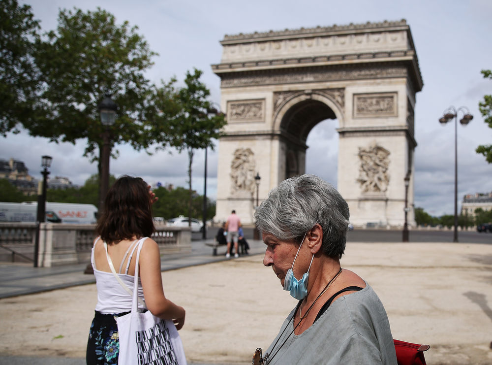 6月17日,人们走在法国巴黎凯旋门附近。(新华社记者高静摄)