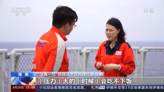 “深海一号”项目深水管缆部经理 侯静:我最怕的就是晚上接电话,心里先咯噔一下,就想会不会有什么事情发生。个别的时候会觉得压力大,压力大的时候会吃不下饭,有时候也会哭。