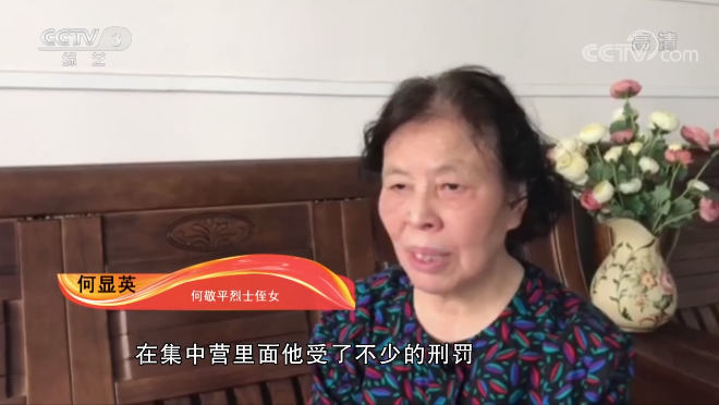 何敬平烈士侄女 何显英:我的四爸(何敬平)他是一个很听话的娃,对家里面的哥哥嫂嫂都很尊重,对母亲也很孝顺,而且对朋友、同事也相当友好。在做地下党工作的时候,他工作很认真、很负责。在集中营里面他受了不少的刑罚,比如说上电刑,灌辣椒水,坐老虎凳,但是他在这些刑罚面前毫不动摇,坚贞不屈。当时被捕的时候,家里面给他送了一些东西,他都把那些东西都分给那些难友们。