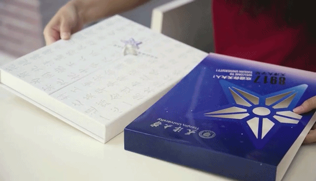 这一颗位于火星与木星之间的8917号小行星,被当做了录取通知书的设计元素。而且就在通知书的开合处,还有一颗可温感变色的“天津大学星”,当用手触摸拽动它的一瞬间,用体温即可让它开启,这份有温度的通知书以天大之名,许了学子一场星河之约。