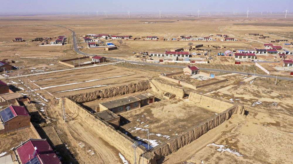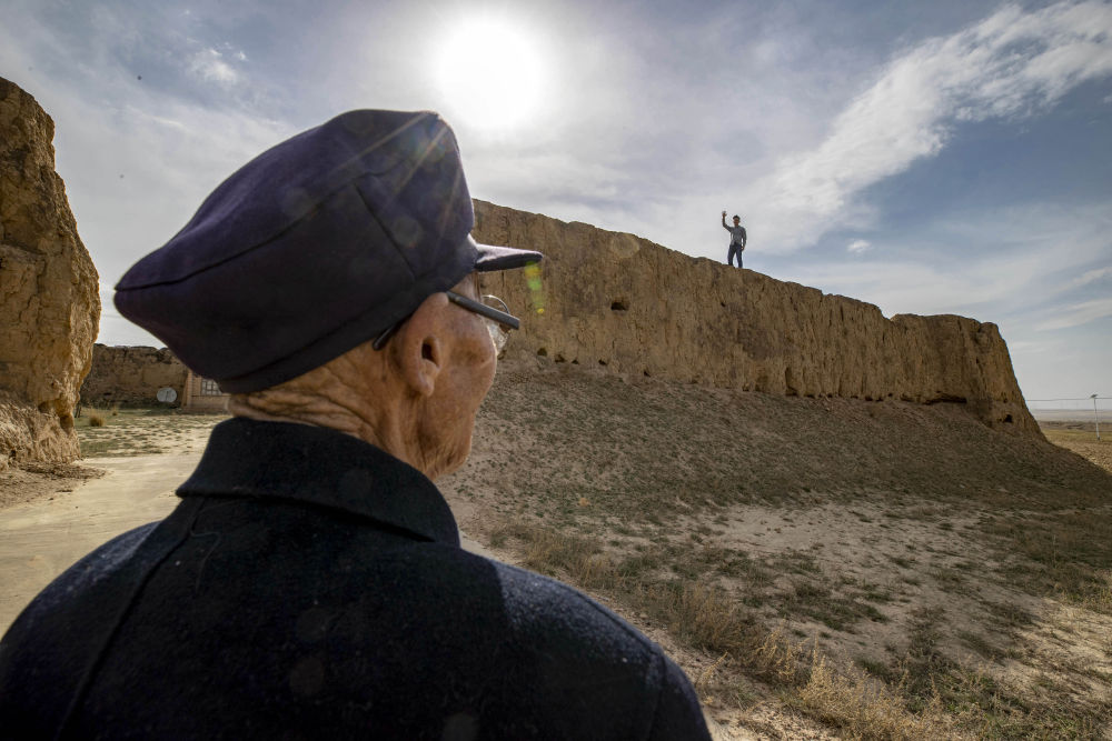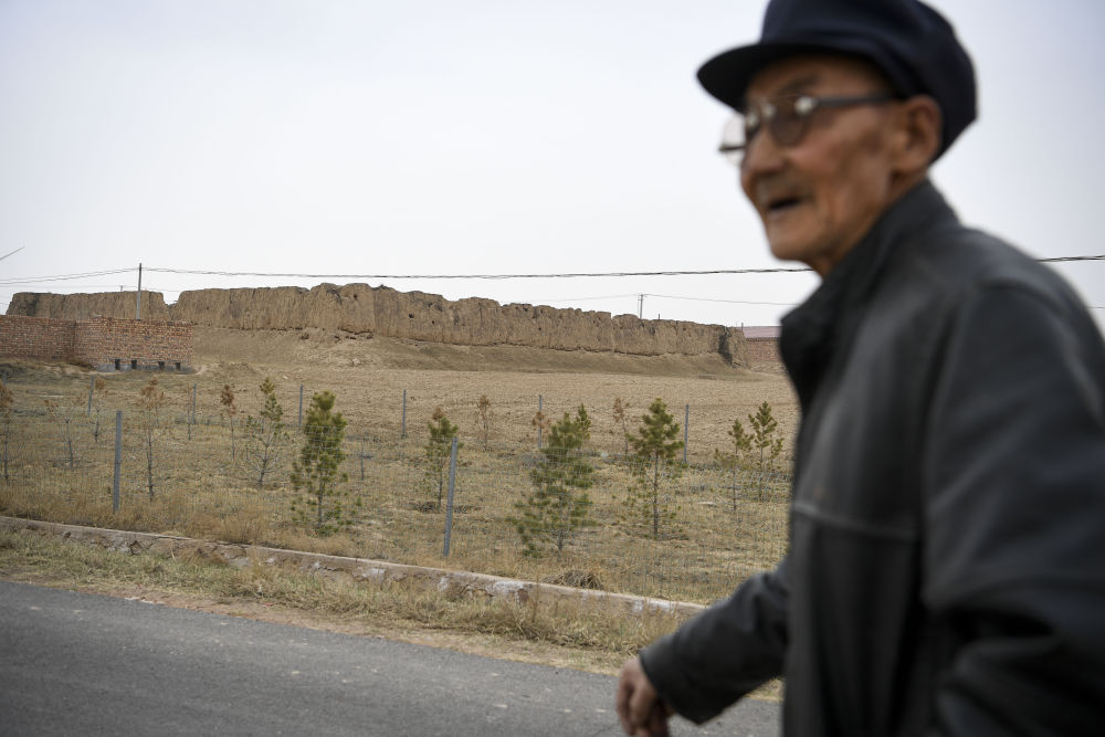 ↑ 3月30日,冯万仁的孙子冯振林在盐池县曾记畔村的小路上散步,不远处便是冯家老宅。