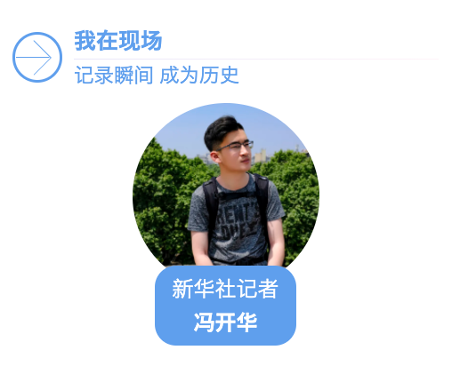 ↑ 新华社记者冯开华在报道中出镜(视频截图)。