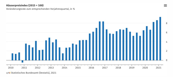 根据德国联邦统计局当地时间25日发布的最新评估,目前德国住宅房地产价格飙升,上涨速度明显加快。