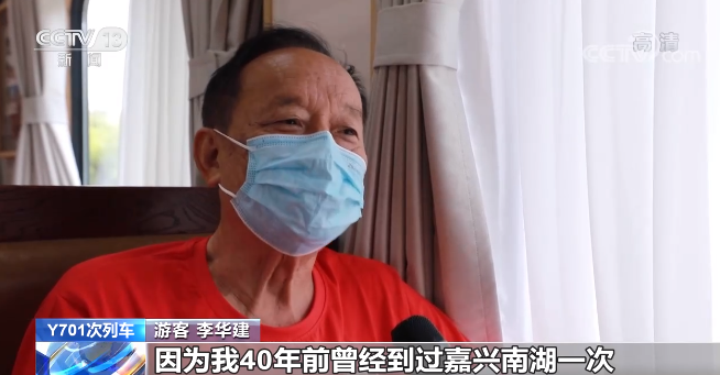 游客 李华建:我是主动报名来参加这次红色旅游的,因为我40年前曾经到过嘉兴南湖一次,现在再次坐这趟列车看到整个站内和周围的环境变化很大,这也说明咱们国家各项建设日新月异,确实令人欢欣鼓舞。