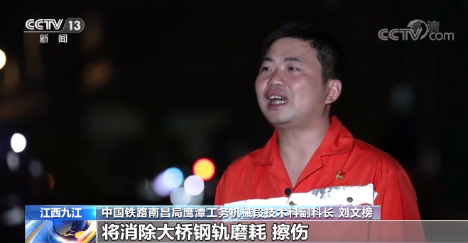 中国铁路南昌局鹰潭工务机械段技术科副科长 刘文榜:这次长钢轨更换以后,将消除大桥钢轨磨耗、擦伤等综合性病害,提升大桥列车通行安全系数。